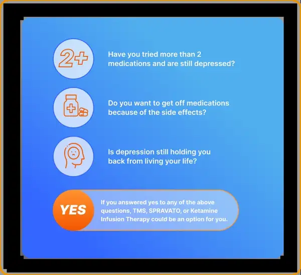 Multi-state psychiatric practice offering Spravato (esketamine), IV ketamine infusions, and TMS therapy with in-network insurance acceptance including Medicare and major commercial plans.